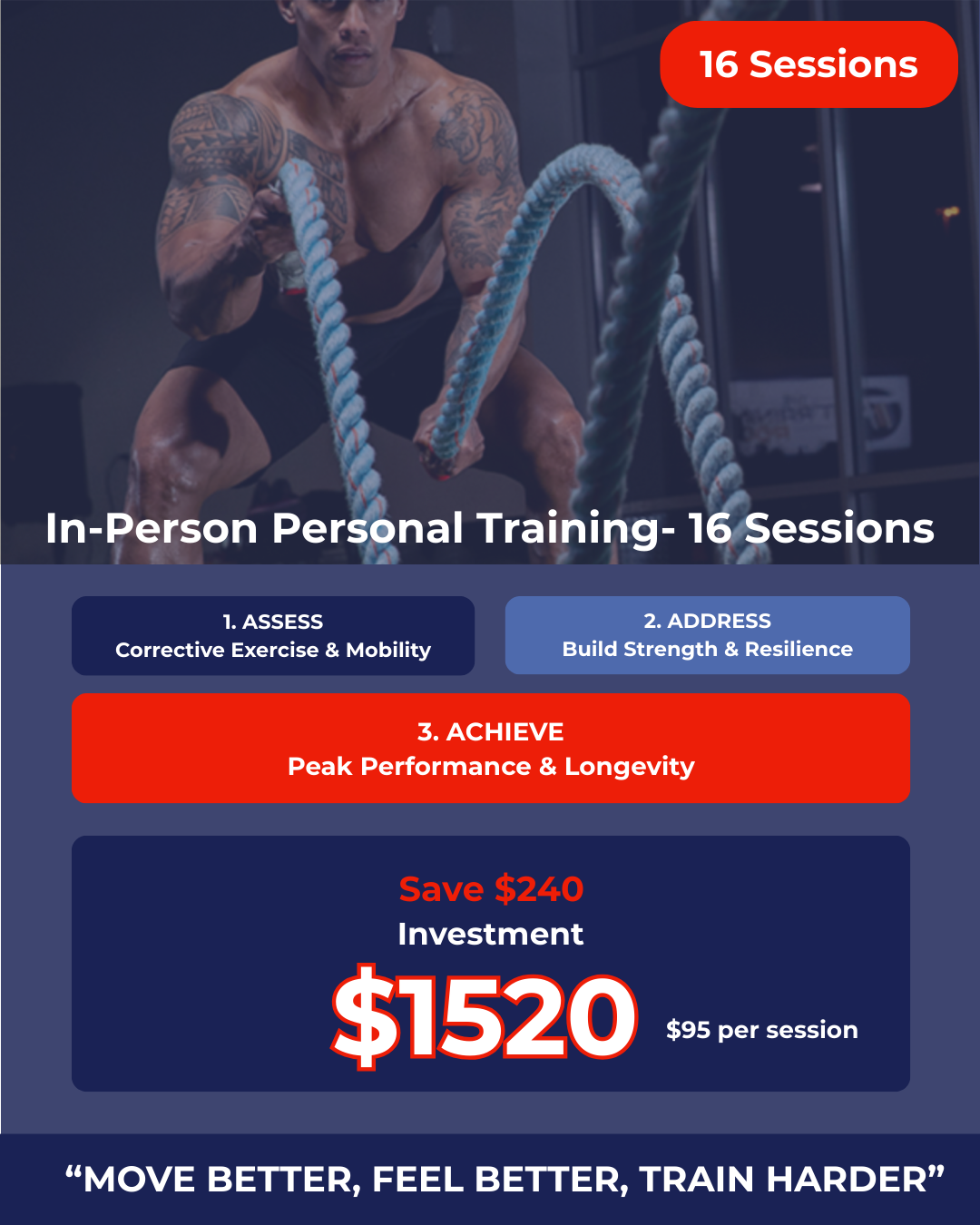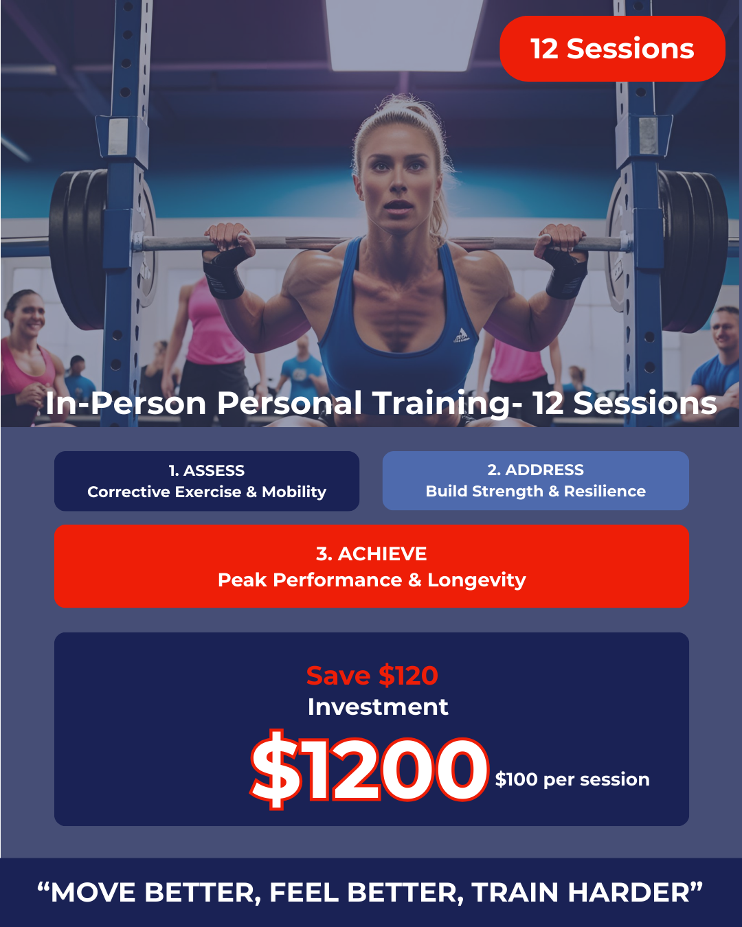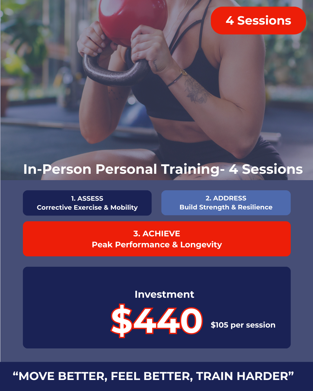 My approach is simple: assess how you move, address limitations or pain, and build strength that lasts.